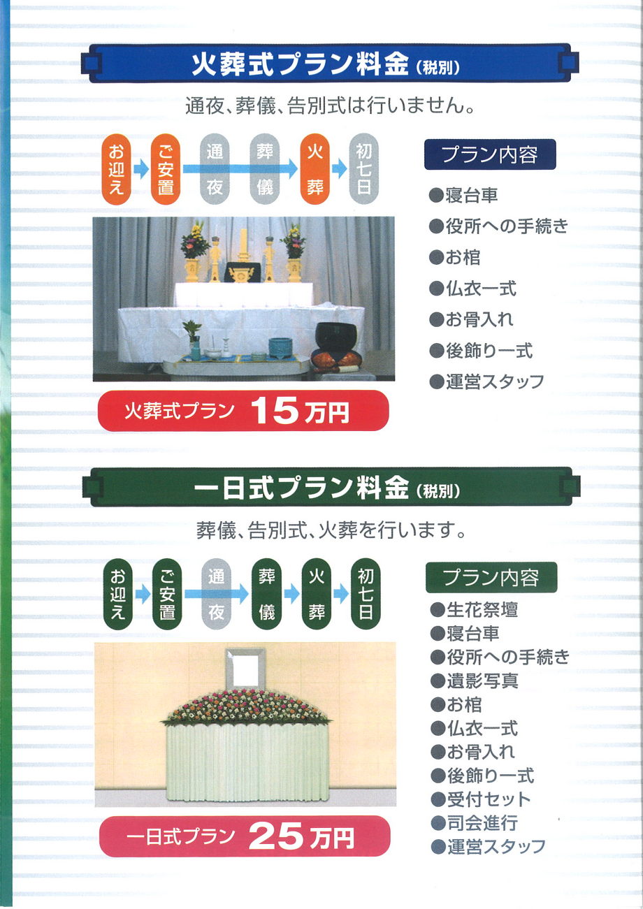 今回、新しく「火葬式プラン」と「一日葬プラン」が加わりました。
