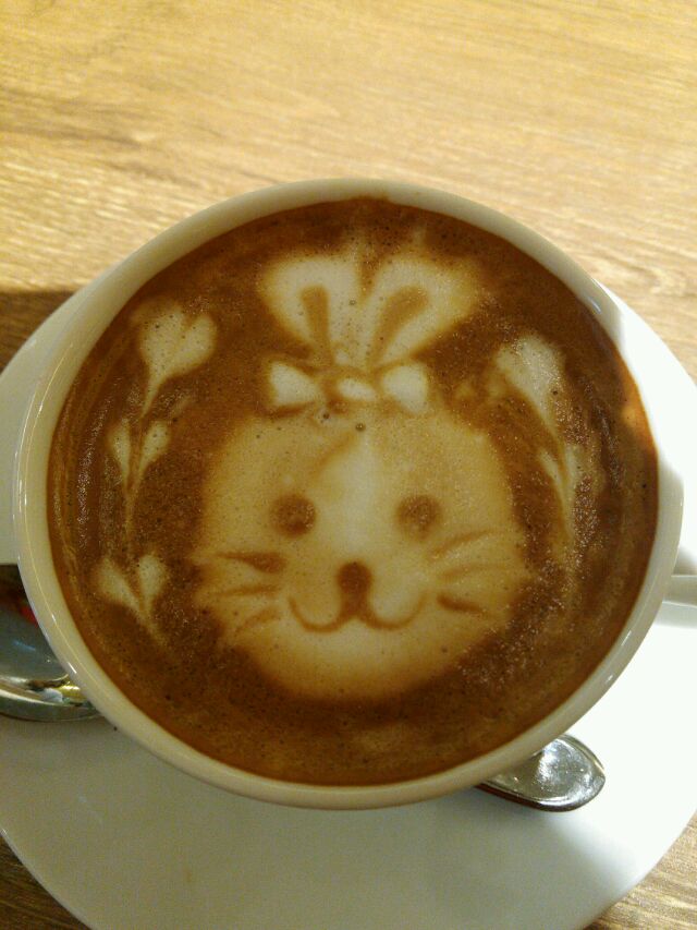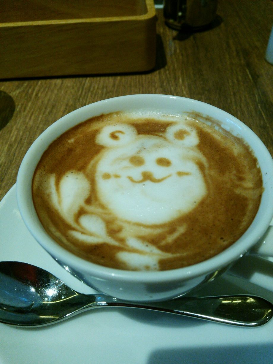 カフェラテを注文すると可愛い絵を書いてくれます。