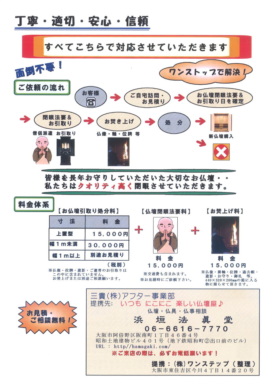 三貴株式会社 / 司法書士 / 会計事務所 / 仏壇・仏事アドバイス / 遺品整理