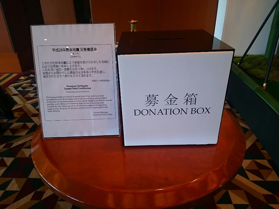 横に熊本地震災害義援金の募金箱が設置
