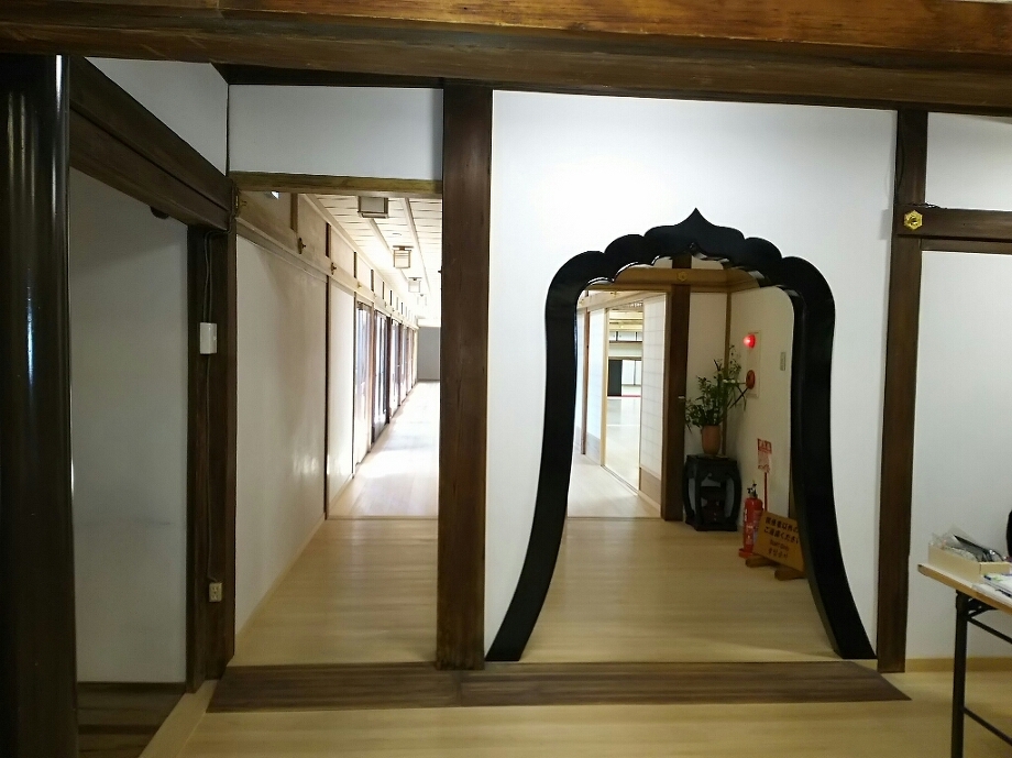 まだ、工事が終わってなく玄関はプレハブで会の途中も