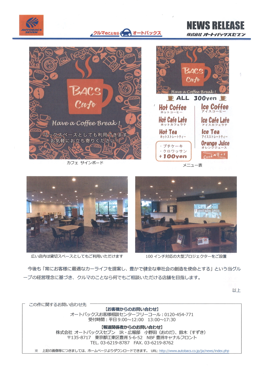 「オートバックスカーズ カフェ」を2017年9月4日にオープンしました。
